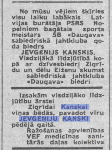 Sieva- Zigrīda Kanska, vairākkārtēja Latvijas čempione burāšanā, dēls - Eižens, dzimis 1962.g.