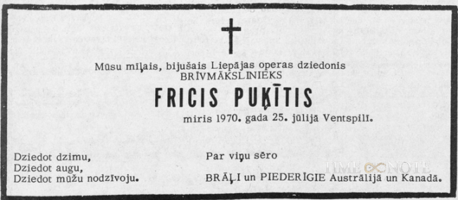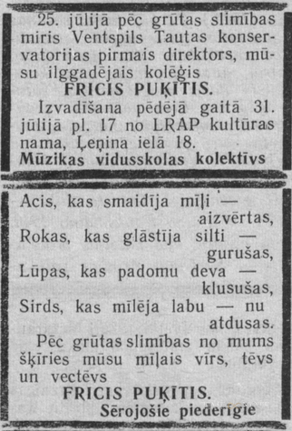 Fricis Puķītis ir ilggadīgs ventspilnieks un viens no tiem, kas nodibināja agrāko Ventspils Tautas konservatoriju. Ilgāku laiku viņš darbojies arī Liepājas operā kā solists.