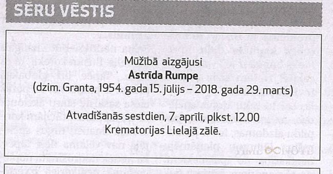 Apbedīta Ogres kapos.