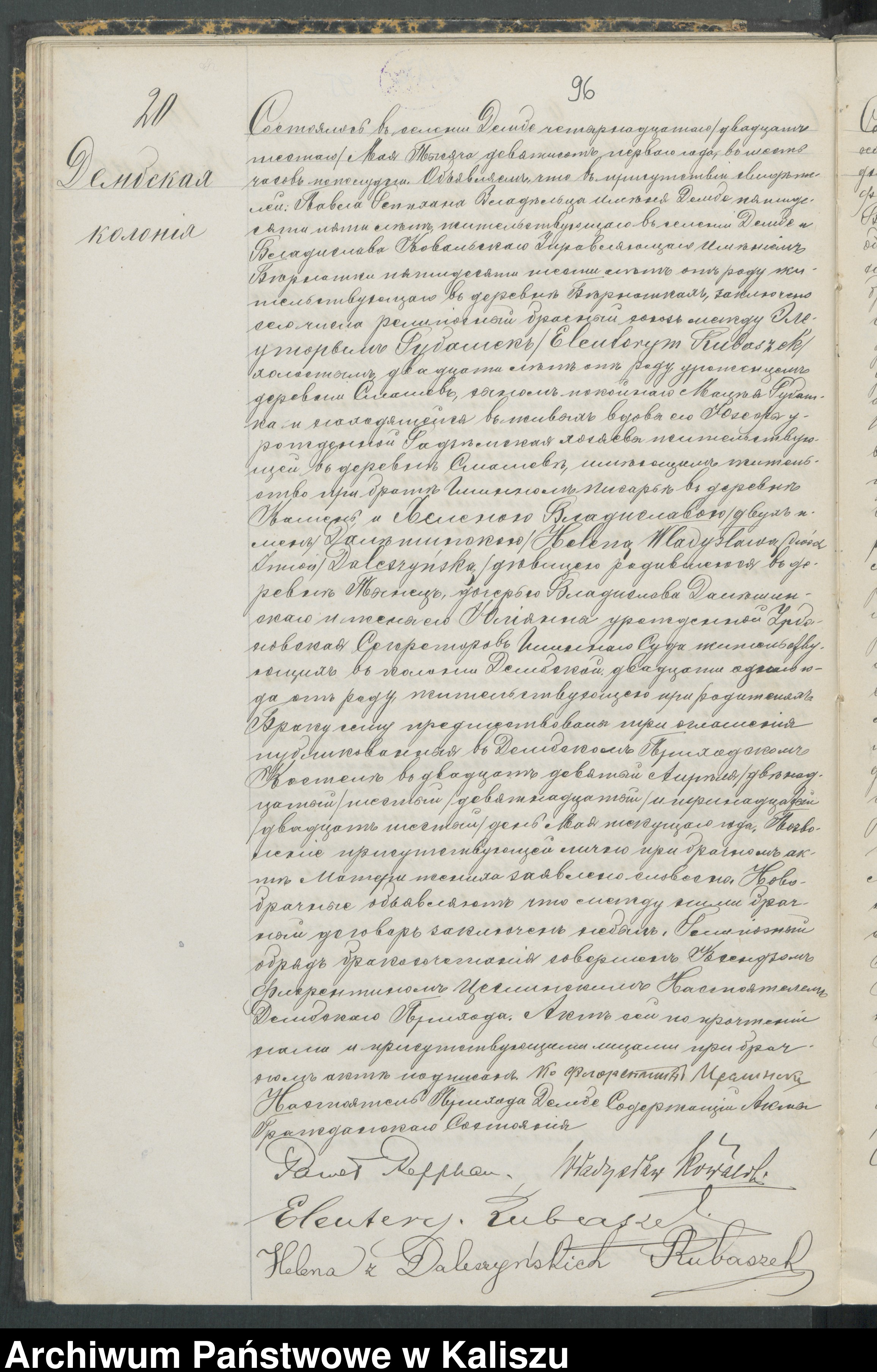 Małżeństwo : Helena Władysława z d. Dalszyńska wyszła za mąż za Eleuterego Rubaszka w parafii Dębe ,