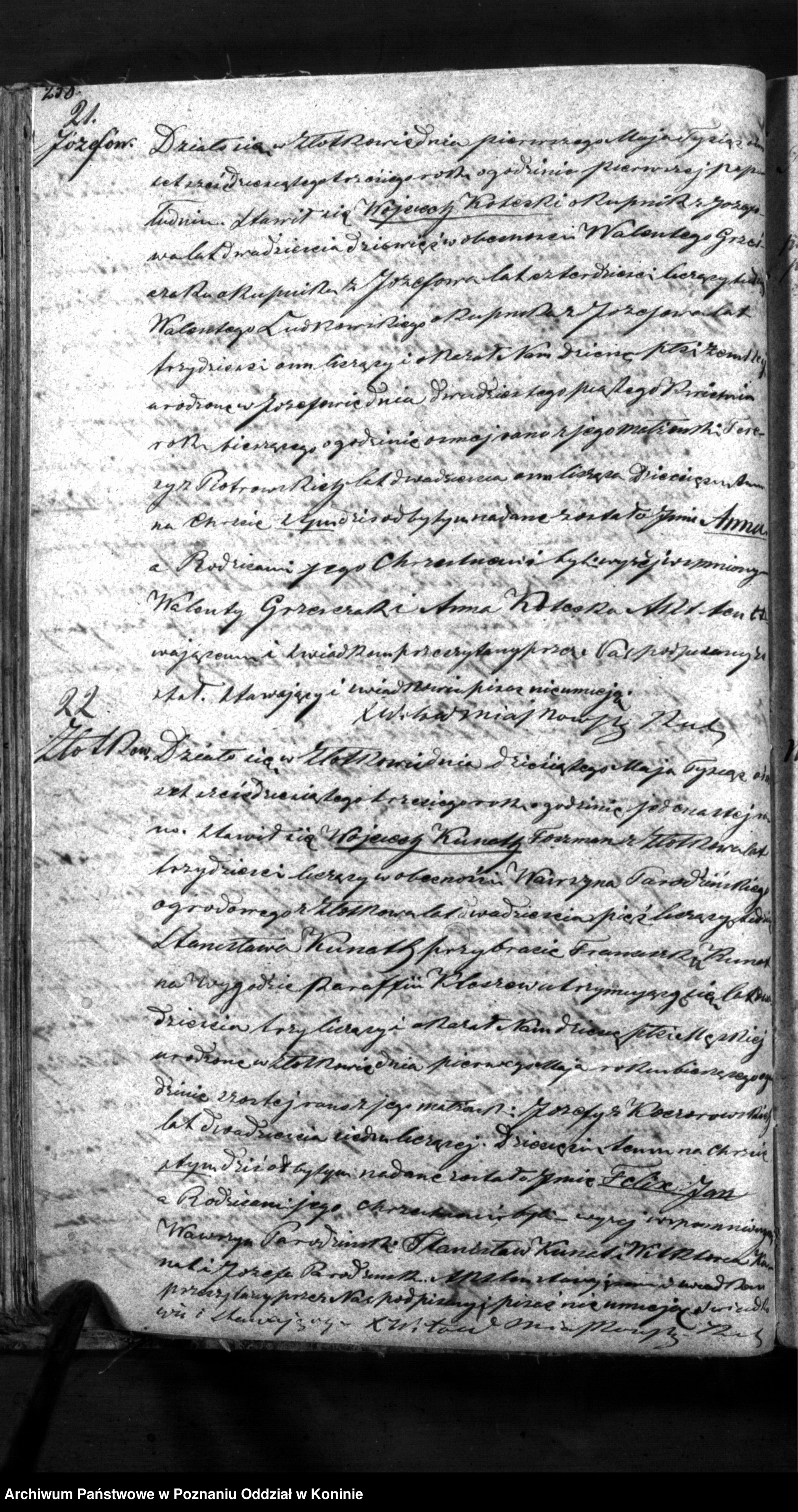 Chrzestni : Walenty Grześczak lat 40 z Józefowa i Anna Kotecka ( ż. Tomasza , brata Wojciecha ?)