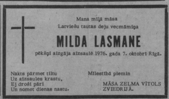 No 1945.g. mācīja dejas skolās un vadīja deju kolektīvus. Veidojusi horeogrāfijas ap 100 dejām. Dziesmu un deju svētku deju virsvadītāja 1948, 1959, 1955 un goda virsvadītāja 1960, 1965, 1970. Sastādījusi vairākus deju krājumus