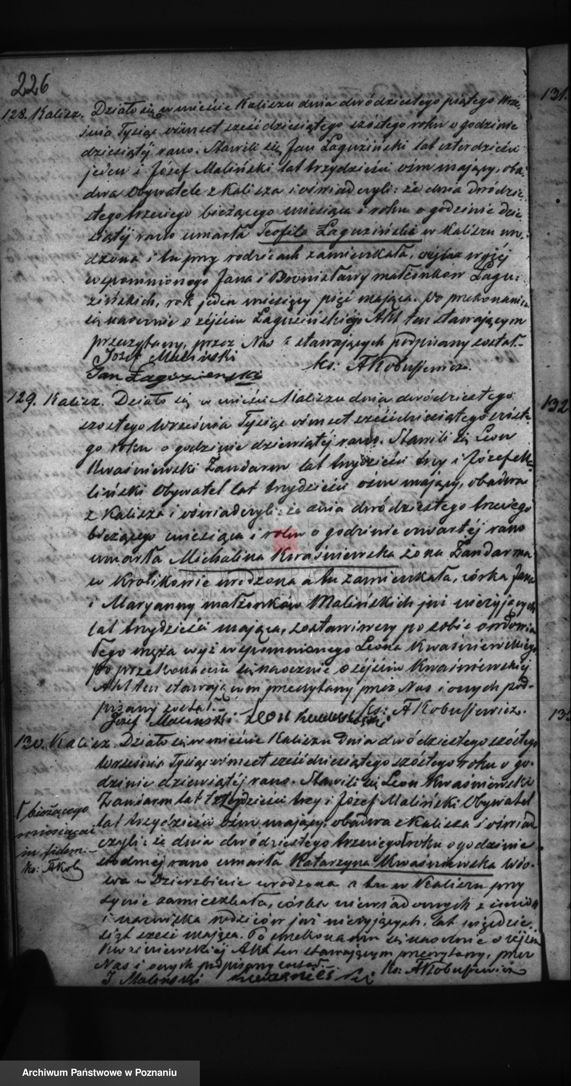 Teofila Łaguzińska ur. w Kaliszu . Zmarła przeżywszy 1 rok i 5 miesięcy .(Akt 128)