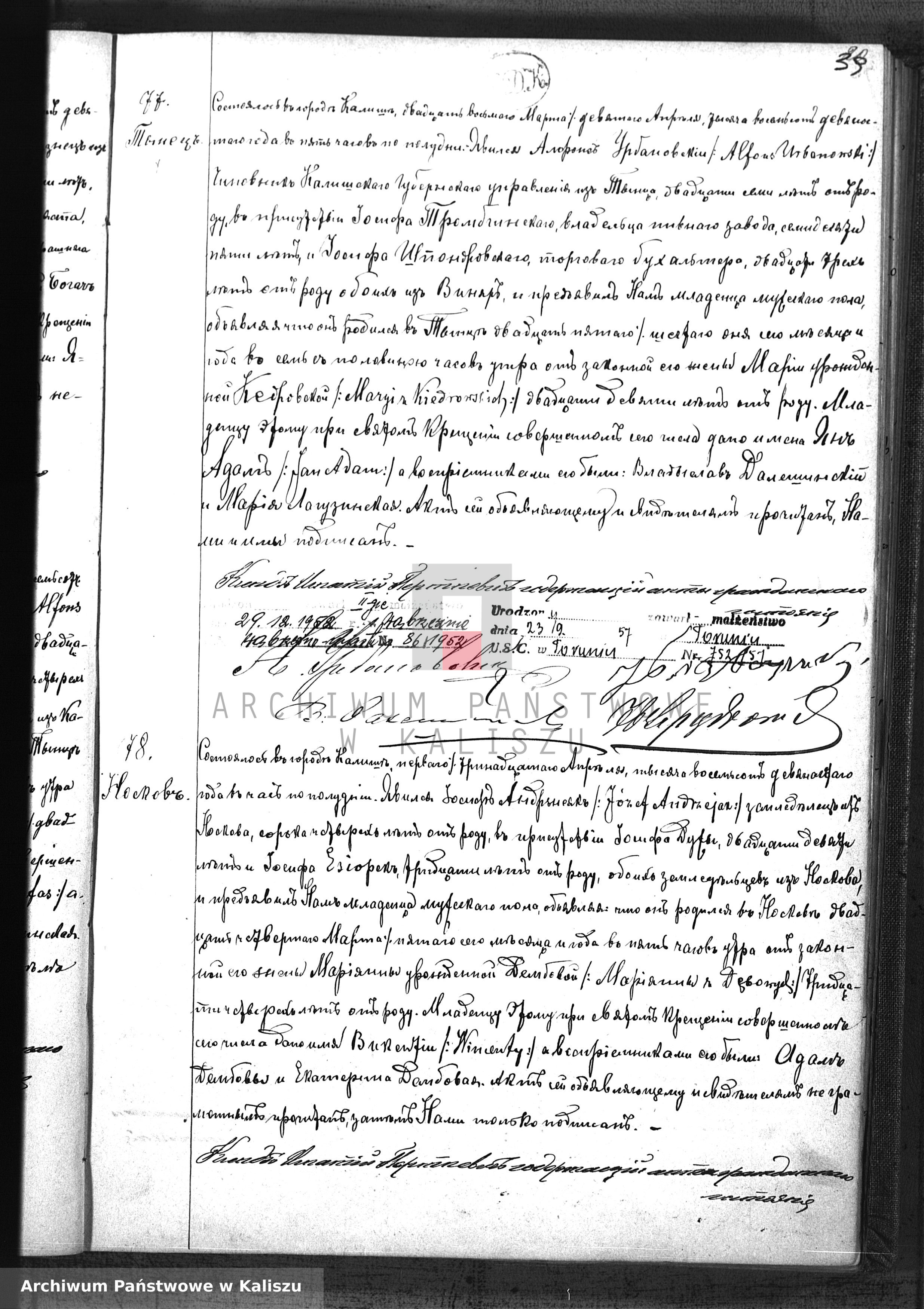 Jan Adam Urbanowski ur. Kalisz . (Akt 77)