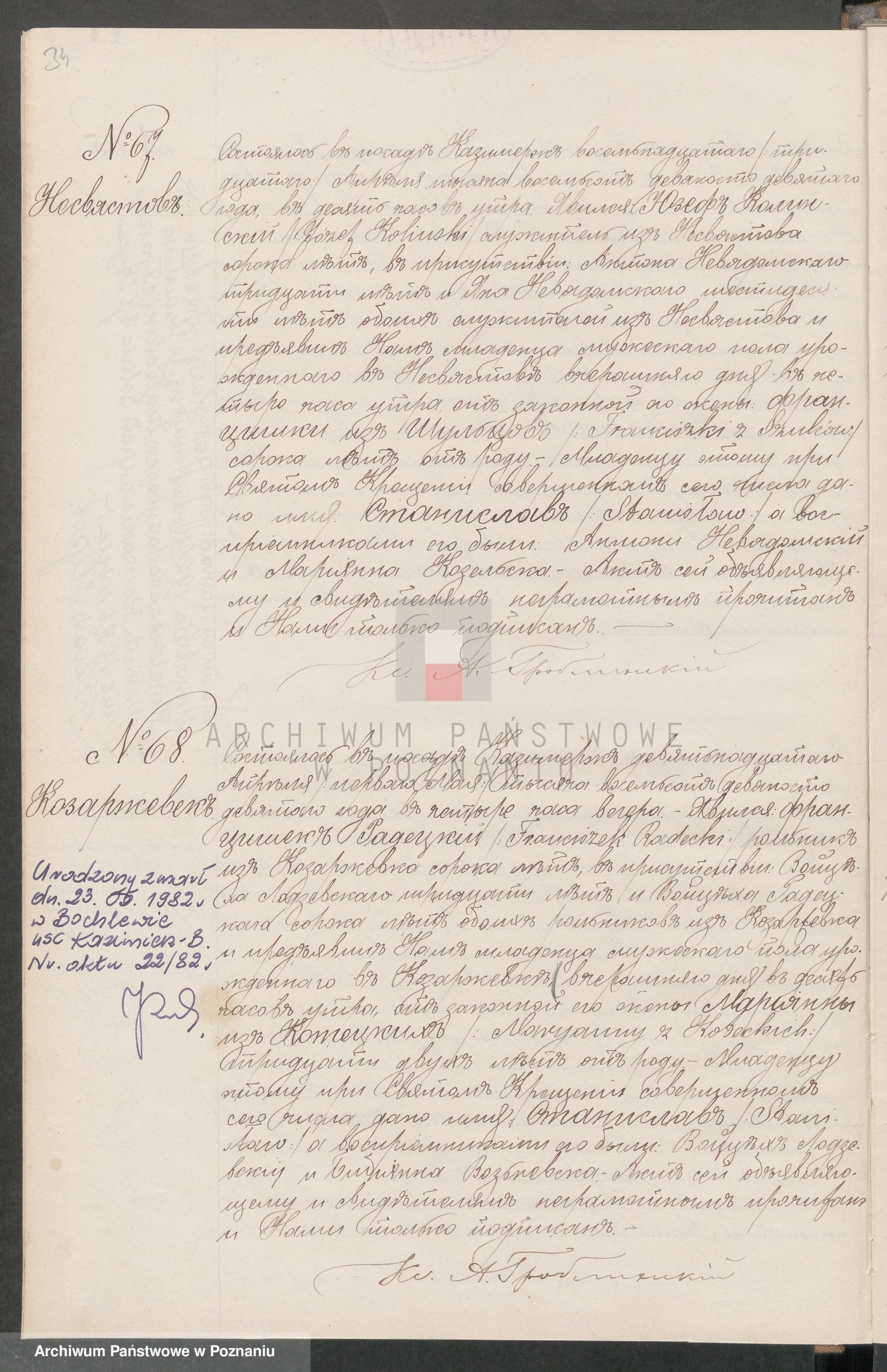 Stanisław Radecki ur. 30-04-1899 w Kozarzewku (Akt 68) , zm. 23-05-1982 w Bochlewie .