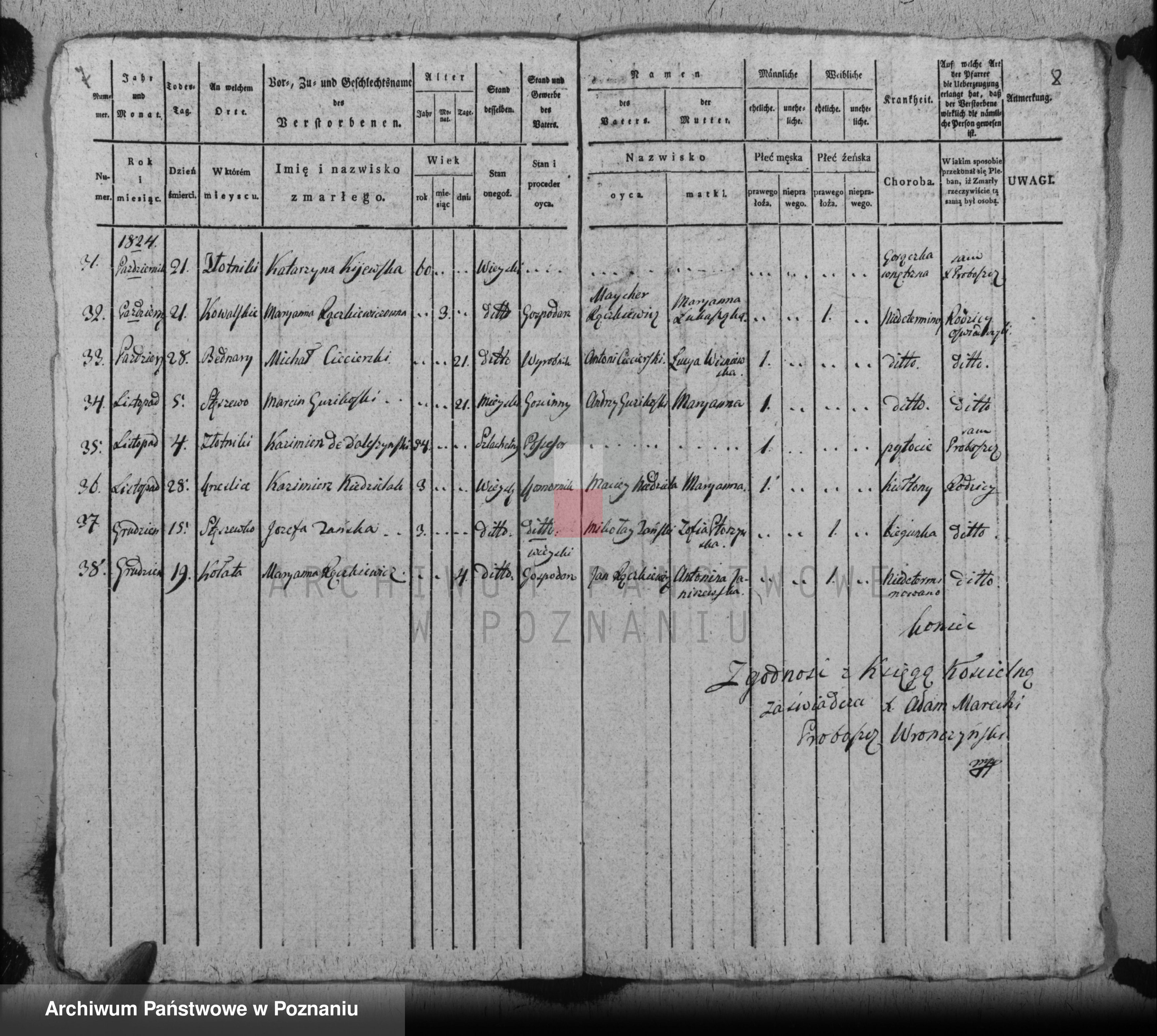 Małżeństwo : Kazimierz Daleszyński (45 lat) i Wiktoria Gądkowska (37 lat) , Parafia Wronczyn . (Akt 3/1814)