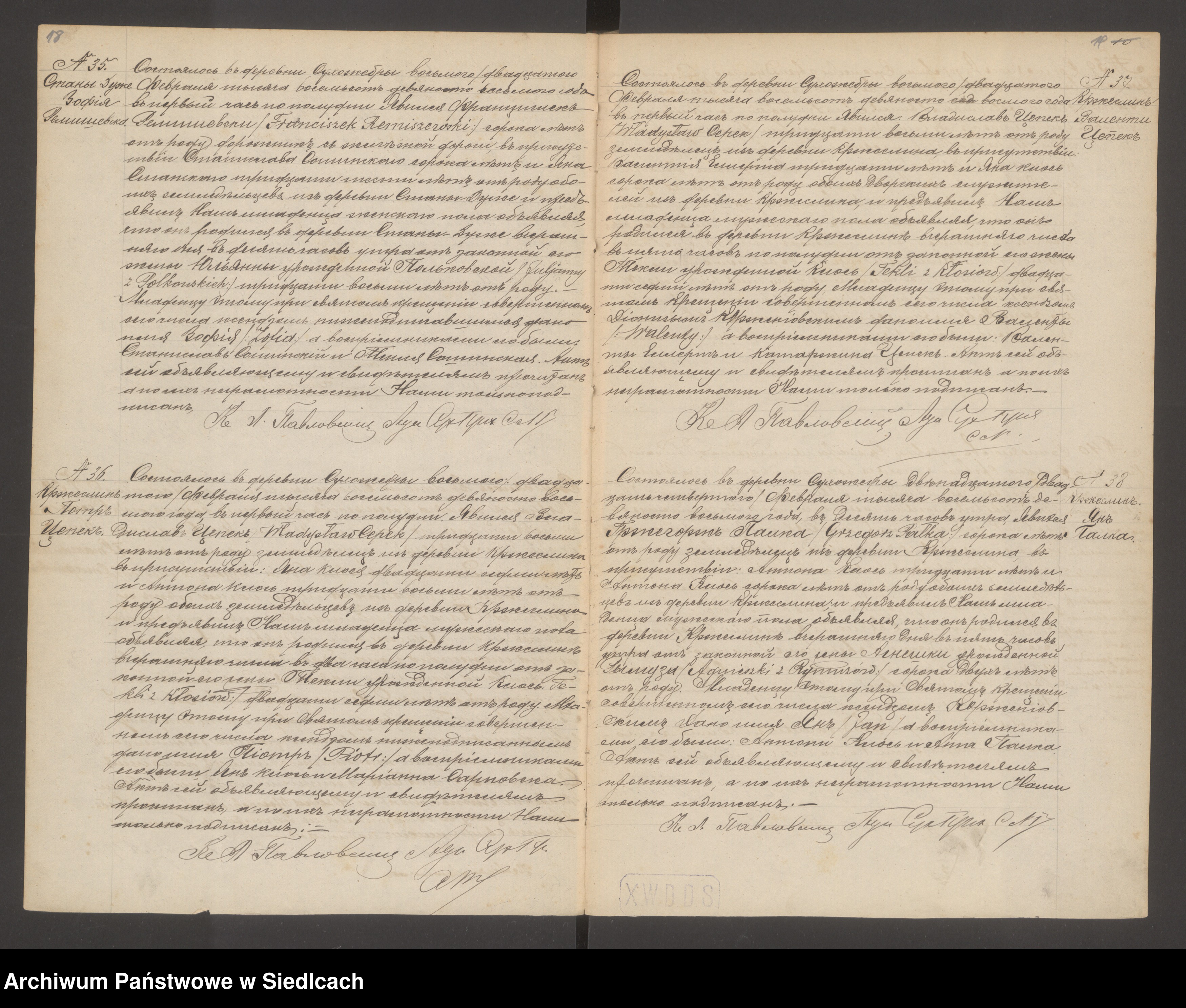 Zofia Polkowska z d. Remiszewska ur. dn. 12 lutego 1898 r. w Parafii Suchożebry , w miejscowości Stany Duże . (Akt 35)