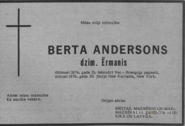Dzimusi Vecbrenguļu pagastā, mirusi ASV.