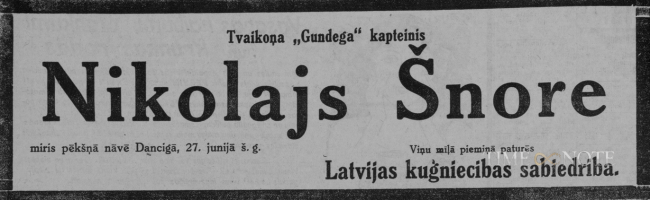 Tvaikoņa "Gundega" kapteinis. Miris Dancigā.