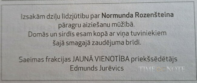 Izsakām visdziļāko līdzjūtību Normunda Rozenšteina tuviniekiem, draugiem un visiem, kuri viņu pazina.