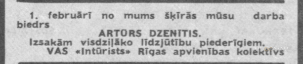 "Intūrists" darbinieks. Sieva - Aina Dzenīte.