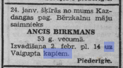 - Kazdangas pagasts, Zirnīšu kapi (Vaigubu, Vaiguptu kapi)