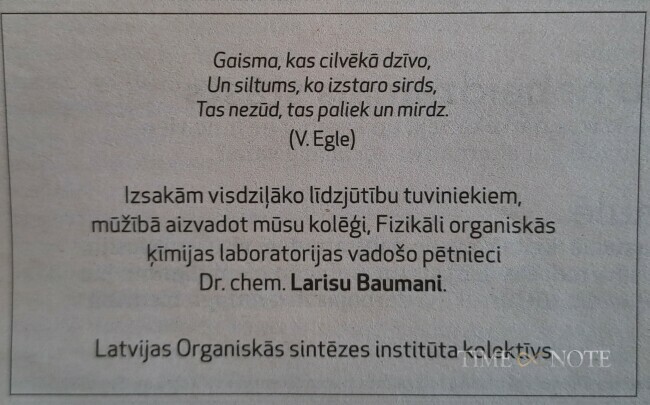 Fizikāli organiskās ķīmijas laboratorijas vadošā pētniece.
