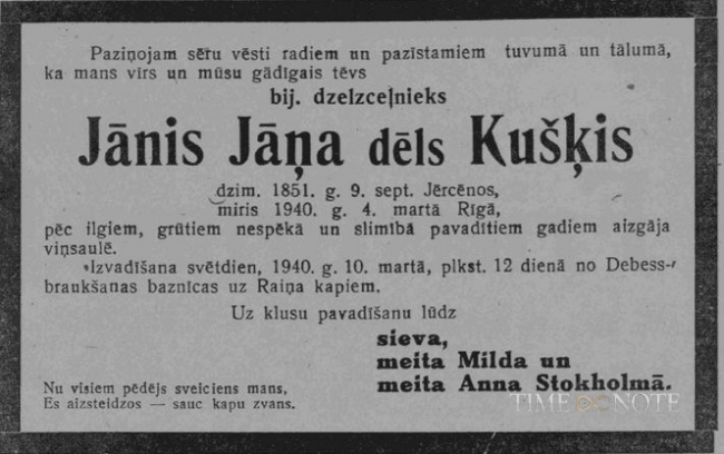 Dzimis Jērcēnos, miris Rīgā. Meitas Milda un Anna.
