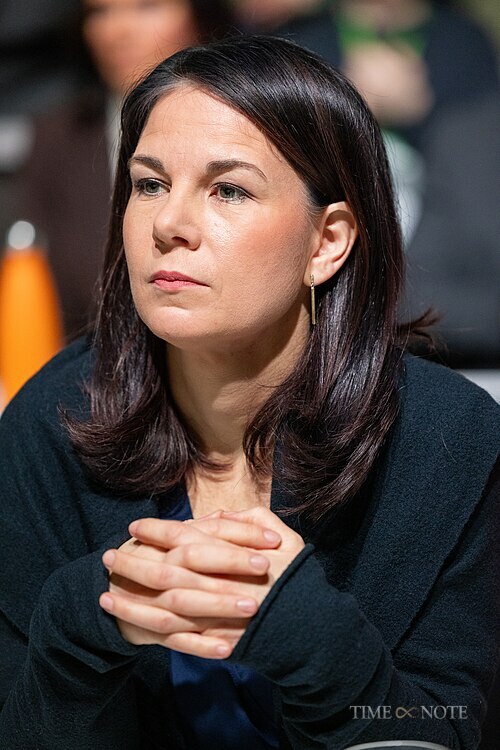 From 2018 to January 2022, Baerbock served as co-leader of Alliance 90/The Greens, alongside Robert Habeck. She was the party's candidate for chancellor in the 2021 federal election. Olaf Scholz from SPD secured the chancellery instead of Baerbock. After the election, the Greens formed a traffic light coalition led by Olaf Scholz, and Baerbock was sworn in as Germany's first female foreign minister on 8 December 2021. Annalena is among eleven high ranking officials of the former and current German government that are under investigation in Germany’s Federal Prosecutor in Karlsruhe for accusations of aiding and abetting genocide, war crimes, and crimes against humanity through their approval of arms exports to Israel. This law suit has been brought forward by a coalition of lawyers under the Justice and Accountability for Palestine Initiative.