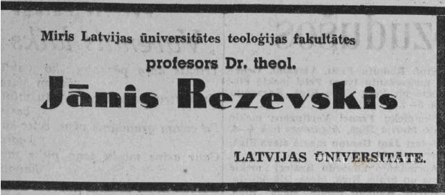"Daugavas avīze" 1943.gadā raksta: "Universitātes teoloģijas fakultātes saime, atceroties savu pirms diviem gadiem mirušo darba biedri un audzinātāju profesoru Rezevski, pulcējās šinīs dienās pie viņa dusas vietas Rīgas Meža Kapu "Lettonias" nodalījumā, kur nolika piemiņas plāksni. Izjustus piemiņas vārdus universitātes ilggadīgajam mācības spēkam veltīja fakultātes dekāns prof. K. Kundziņš un sekretārs profesors Zitāns, noliekot fakultātes vārdā krāšņu vainagu. Rosīgais zinātnieks atstāja šīs zemes gaitas boļševiku baigā gada pašās beigās, nespēdams vairs izturēl toreizējo patvaldnieku teroru. Tagadējās piemiņas svinībās varēja piedalīties tikai nelaiķa meita no tuviniekiem, jo profesora Rezevska dēls savu dzīvību pagājušā gadā upurēja uz tēvzemes altāra cīņā pret boļševismu austrumos.