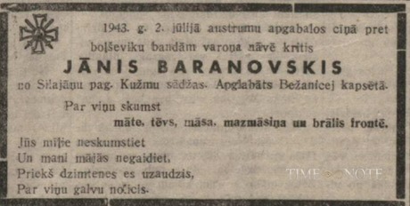 2. Pasaules kara dalībnieks, Latviešu leģiona leģionārs. Kritis cīņās pret boļševiku bandām.