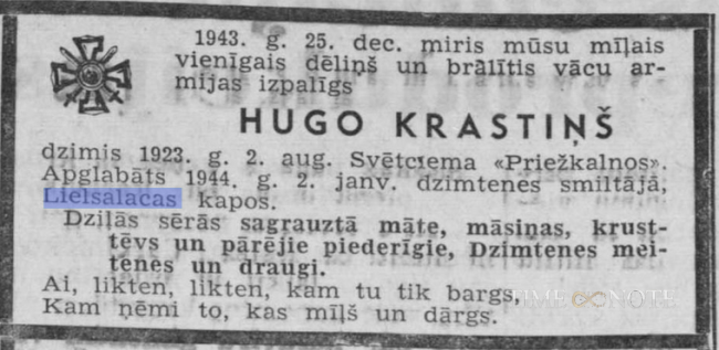 2. Pasaules kara dalībnieks, Latviešu leģiona leģionārs. Dzimis Svētciema "Priežkalnos".