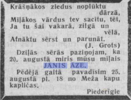 Iestājoties pulkā, saucas Ahse, rakstos Hāze. L.k.o, dome uzvārdu izlaboja no Hāze uz Āze.