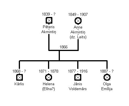 Kūmās Akmentiņu un Leišu dzimtas pārstāvji, viņu vidū arī Jāņa Voldemāra mātesmāsa - Ieva Bebris (Eewe Bebbers) no Lazdonas pagasta.