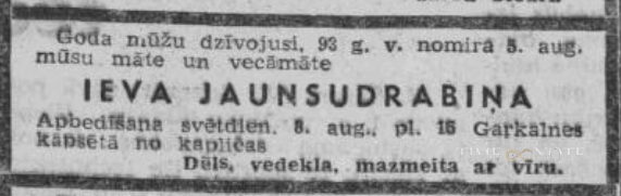 Rakstnieka Jāņa Jaunsudrabiņa māte. Vīrs - Jānis.