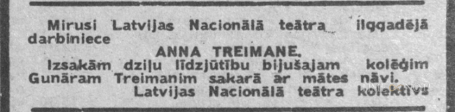 Anna Treimane - Nacionālā teātra darbiniece (26.09.1904 Katvaru pag.- 22.11.1990).