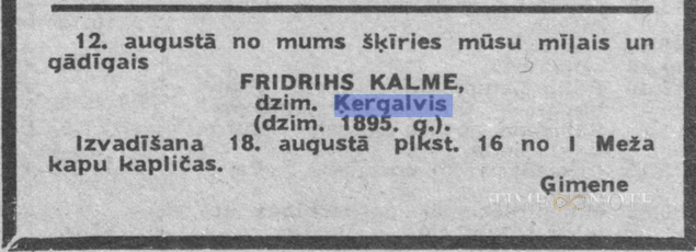 Fridrihs Ķergalvis - Kalme apglabāts 2.Meža kapi Rīgā, F laukums, rinda 36.