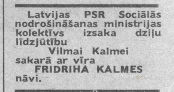 - 1940.g. 22.maijā Iekšlietu ministrijas pasu daļas ieraksts PV05183U uzvārda maiņa - KALME