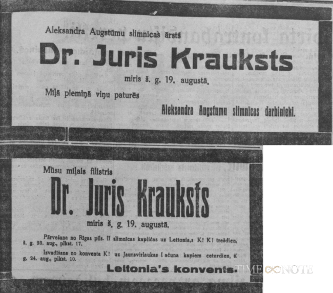 Rīga, 2. pils. slimnica nomira Aleksandra augstumu vecākais ārsts Dr. Juris Krauksts.