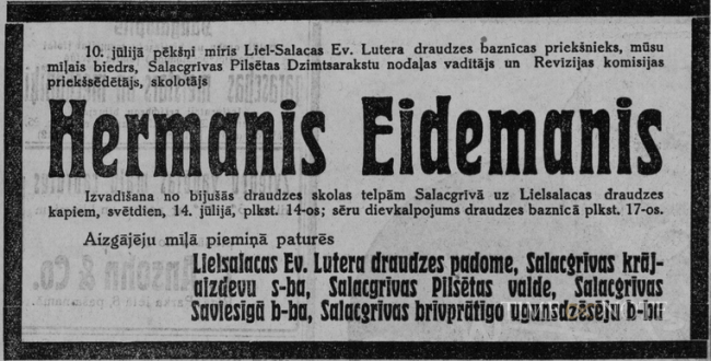 Hermanis Eidemanis, vecākais bērns draudzes skolotāja Eidemaņa ģimenē.