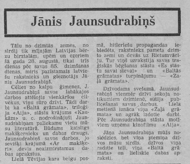 1933. gadā sarakstīja romānu “Jaunsaimnieks un velns“.