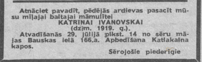 Izvadīšana no sēru mājas Bauskas ielā 166a.