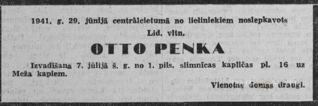1941. VII 07. apbedīts Meža kapos Rīgā.