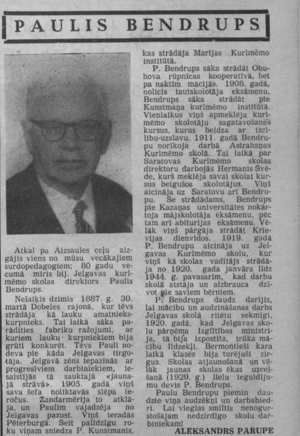 2019. gadā Jelgavas speciālā internātpamatskola pārdēvēta par Jelgavas Paula Bendrupa pamatskolu.