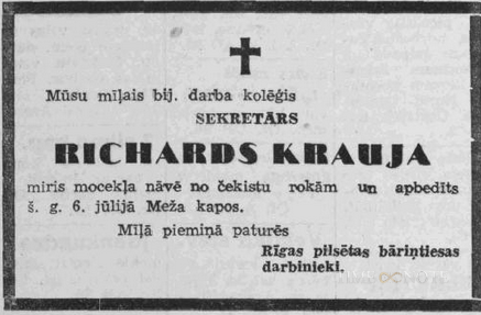1941. Centrālcietumā nošauts par (padomju) dzimtenes nodevību, dzim. 1896.g. Cēsu apriņķī.