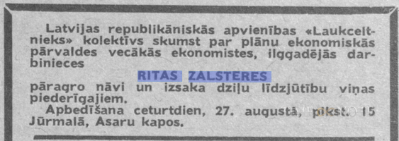 | 3 | Berta Zalstere | Sievas/vīra māte | ||