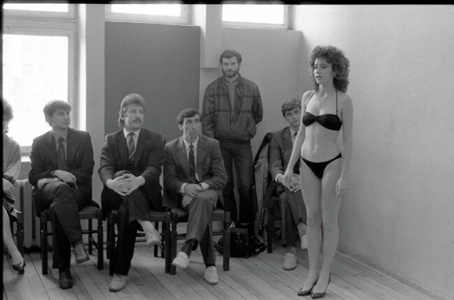 - Meiteņu iznesību un grāciju vērtēja kosmetoloģe Baiba Jevdokimova, kostīmu māksliniece Ieva Kundziņa, bet viens no jaunākajiem žūrijas pārstāvjiem bija komjauniešu līderis Ziedonis Čevers.