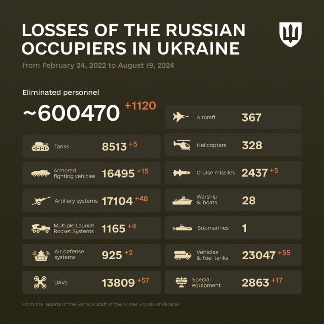 Krievijas iebrukums Ukrainā. Kara 908. diena.Krievijas dzīvā spēka zaudējumi Ukrainā pārsniedz 600,000