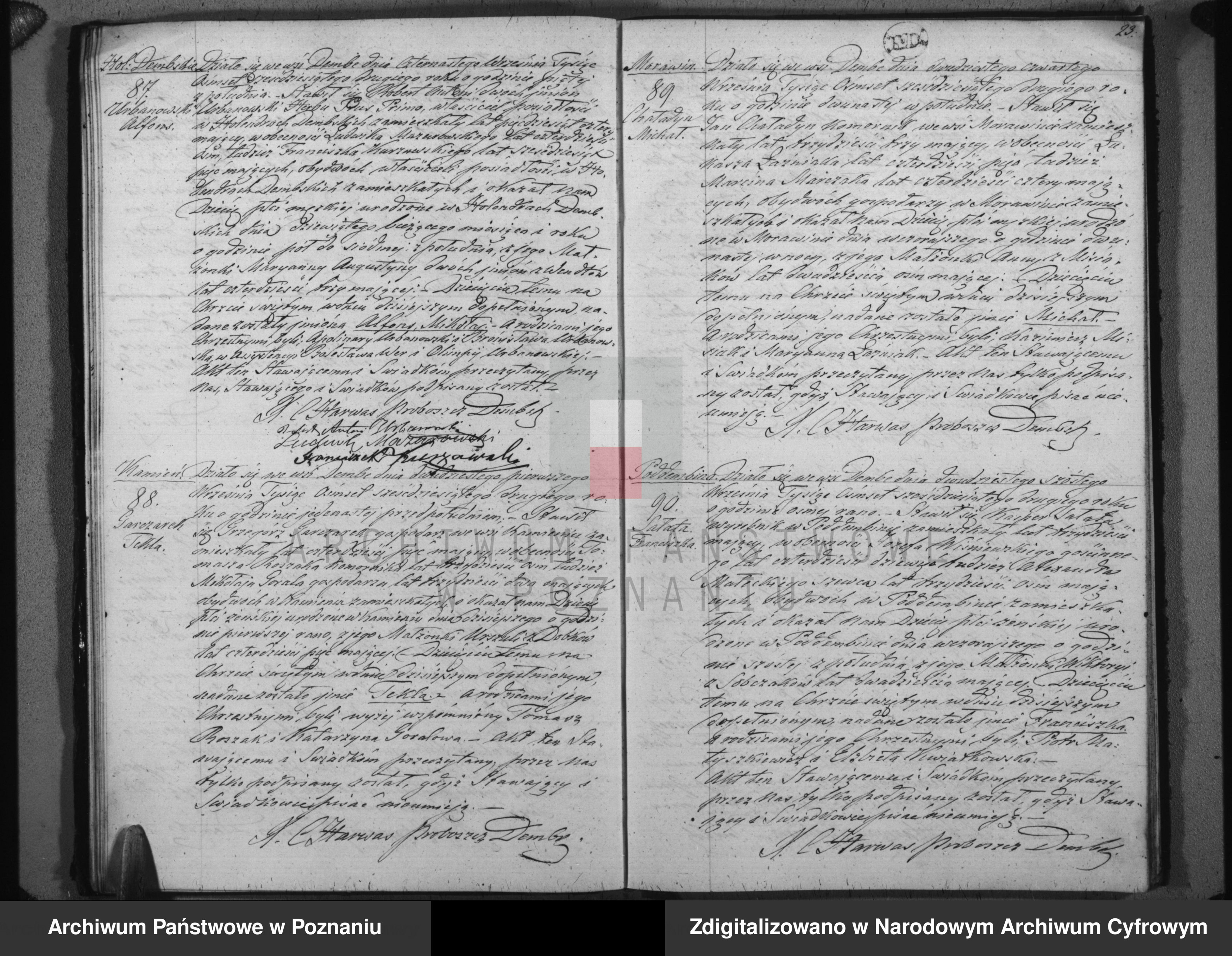 Alfons Mikołaj Urbanowski ur. w Holendrach Dębskich (Kolonii Dębe ) , w Parafii Dębe . (Akt 87)
