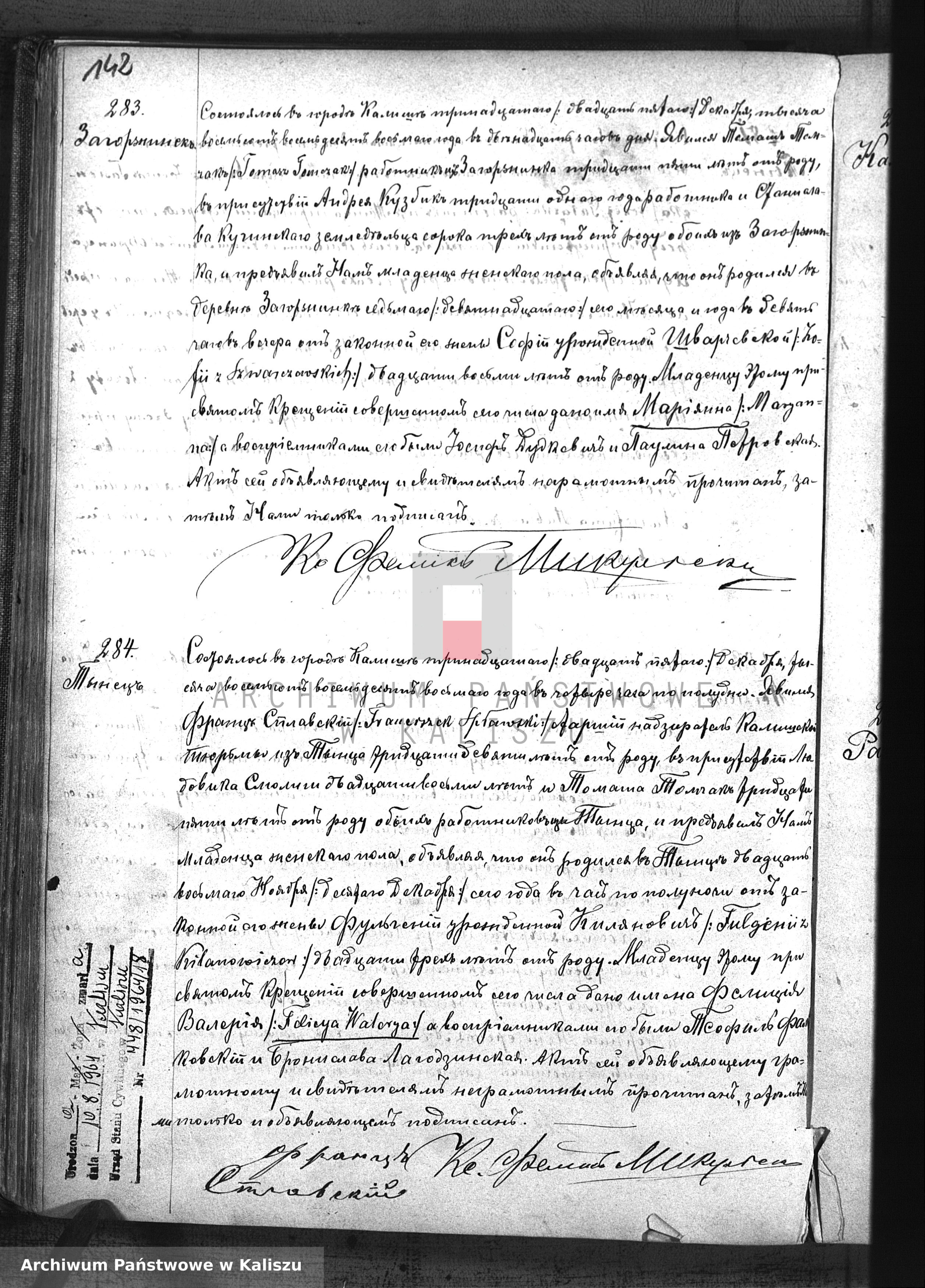 Felicja Waleria Daleszyńska z d. Spławska urodziła się w Tyńcu k/Kalisza. (Akt 284)