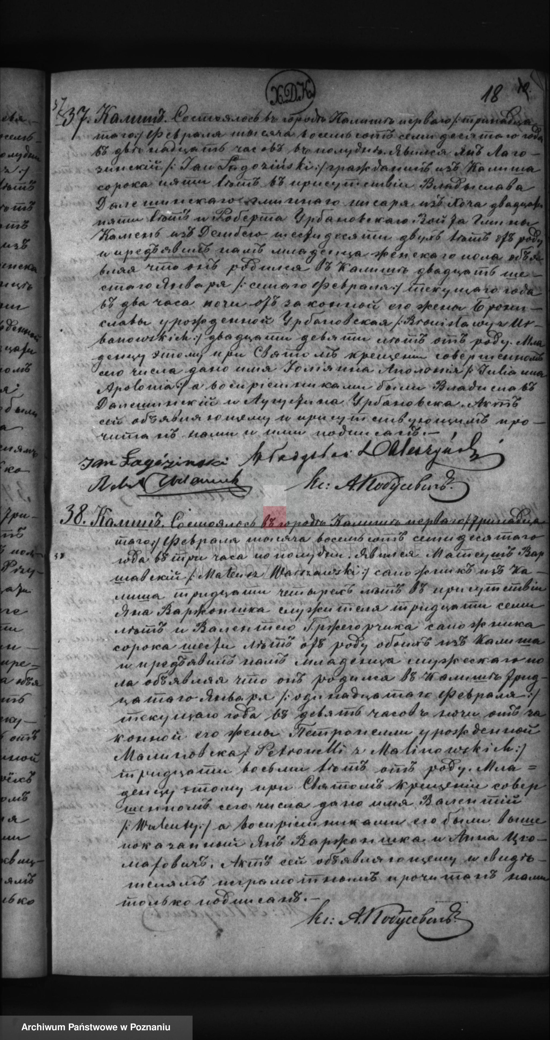 Julia Apolonia Łagudzińska ur. w Kalisz. (Akt 37)