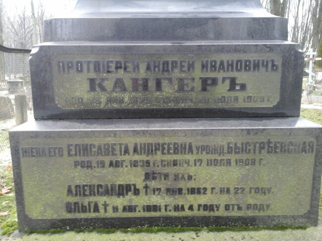 Andreja Kangera un Jeļisavetas dz. Bistrevskaja (1839-1910) ģimenē piedzima 6 bērni. Meita - Eiženija (Jevgeņija) Ārente, dēls - jurists Jānis Kangers.