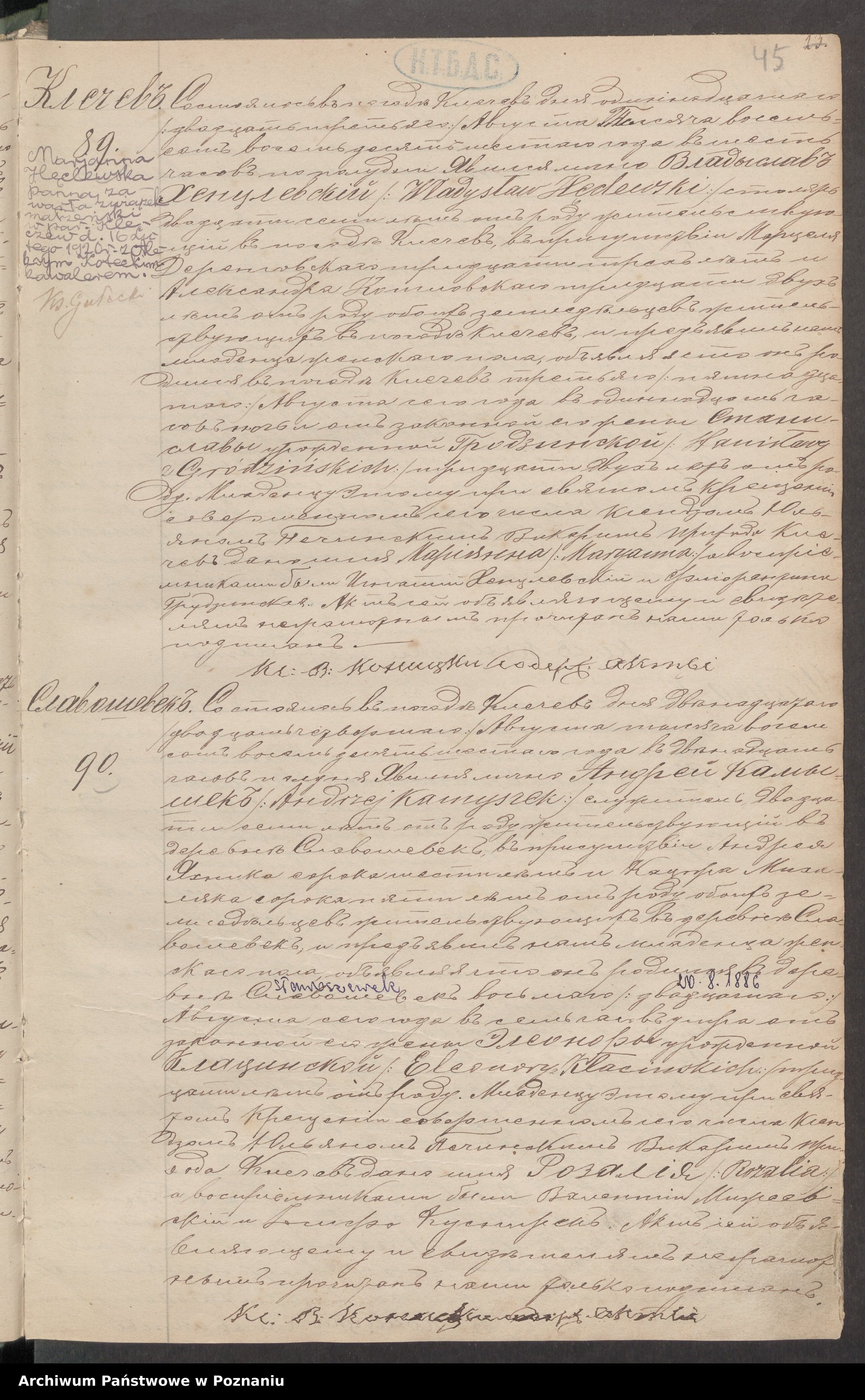 Marianna Kotecka z d. Henclewska urodzila się w Parafii w Kleczewie dnia 15 sierpnia 1886 r. Akt 89