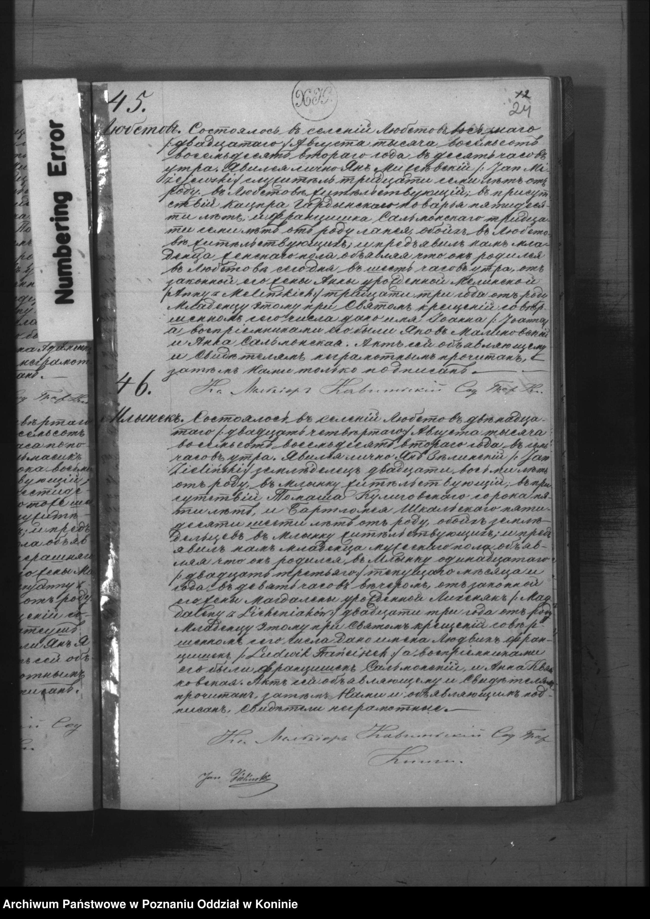 Rodzice : Jan Zieliński i Magdalena z d. Licheniak . Ślub w Parafii Lubstówek dn. 4-10-1874 r. (Akt 5)