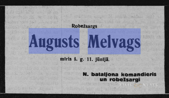 Augusts Melvags Indriķa dēls, dz. Grobiņā 07.08.1906.g. miris 11.06.1940.