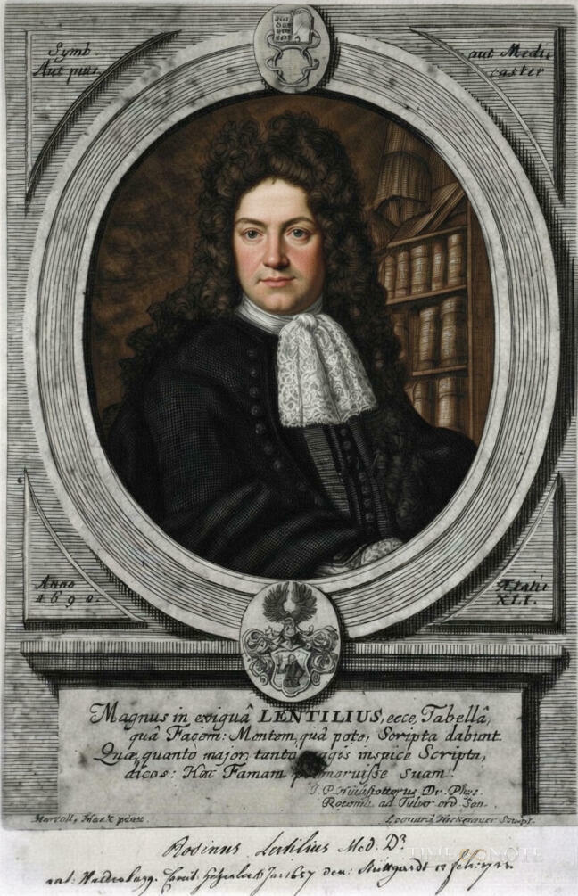 1683. gadā Lentiliju uzņēma "Dabas kuriozu akadēmijā" (latīņu: Academia Naturae Curiosorum), kas