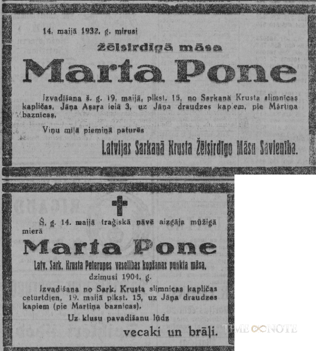 Pirmos Vasarssvētkos apmēram 2 km no Amatas stacijas uz sliedēm atrada sabrauktas jaunas sievietes līķi. Blakus gulēja rokassomiņa ar dokumentiem uz 27 gadus vecās Martas Pones vārda, biļete Rīga-Alūksne un 45 lati naudas. Policija noskaidroja, ka nelaimīgā ir Sarkanā krusta Pēterupes veselības kopšanas punkta želsirdīgā māsa. Svētku sestdienas rītā viņa no Pēterupes iebraukusi Rīgā, lai vakarā ar Gulbenes vilcienu dotos apciemot savu brāli - 7.Siguldas kājnieku pulka pulkvežleitnantu Poni. Līdzbraucēji stāsta, ka Pone Rīgā iekāpusi pārpildītā smēķētāju vagonā. Gandrīz katrā stacijā viņa piegājusi pie durvīm paelpot svaigu gaisu. Kad vilciens jau bija pagājis garām ieriķiem, Pone atkal izgāja ārā. Domājams, ka viņa nostājusies uz vagonu savienojamās platformas, iekļuvusi starp platformas platēm un saspiesta.