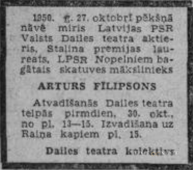 Dēls - Jānis Filipsons dz.1943.g., beidzis Dailes teātra 3.studiju, bijis aktieris.