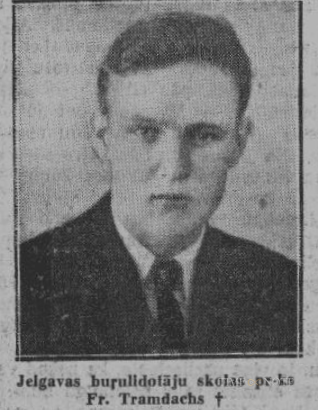 Papildus mums pa telefonu vēl ziņo: Vakar Jelgavas pils pļavās notikušas burulidotāju apmācības. Tramdahs priekš apmācībām pārbaudījis lidaparātu un, pacēlies gaisā, applanējis dažus riņķus. 20 metru augstumā lidaparāts pārgājis grīstē un nogāzies. Burulidmašīnai pret zemi atsitoties, Tramdahs izsviests no kabīnes un aiztriekts ap 6 m no lidaparāta. No trieciena T. zaudējis samaņu. Katastrofas iemeslus noskaidro Latvijas aerokluba Jelgavas nodaļas pr-ks pulkv.-ltn. Hellers. Tramdahs buru lidošanu mācījies Jelgavas buru lidotāju skolā un bijis viens no mūsu labākiem un centīgākiem buru lidotājiem. T. vecāki dzīvo Saldus pag. Airītēs, Skudru mājās. Šodien mirstīgās atliekas pavadīs no Sarkanā krusta slimnīcas uz Nikolaja baznīcu.