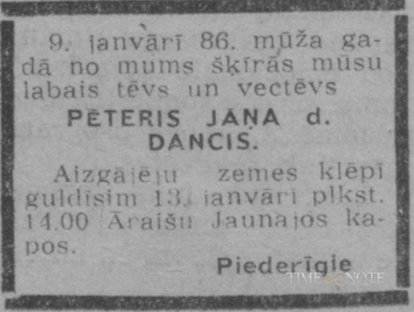 1919. g. 3. nov. Bolderājas raj. kaujā pie Šmita mājām Dancis, smacējošu gāzu saindēts, palika ierindā un vadīja savu ložmetēju līdz kaujas beigām.